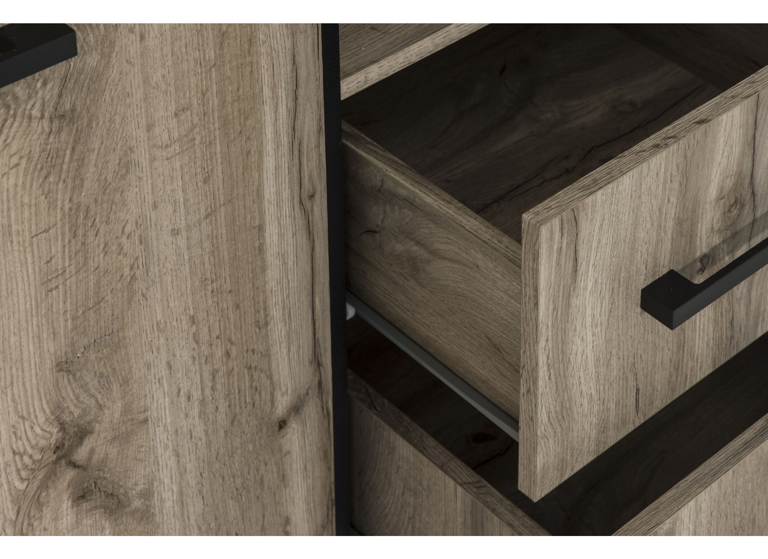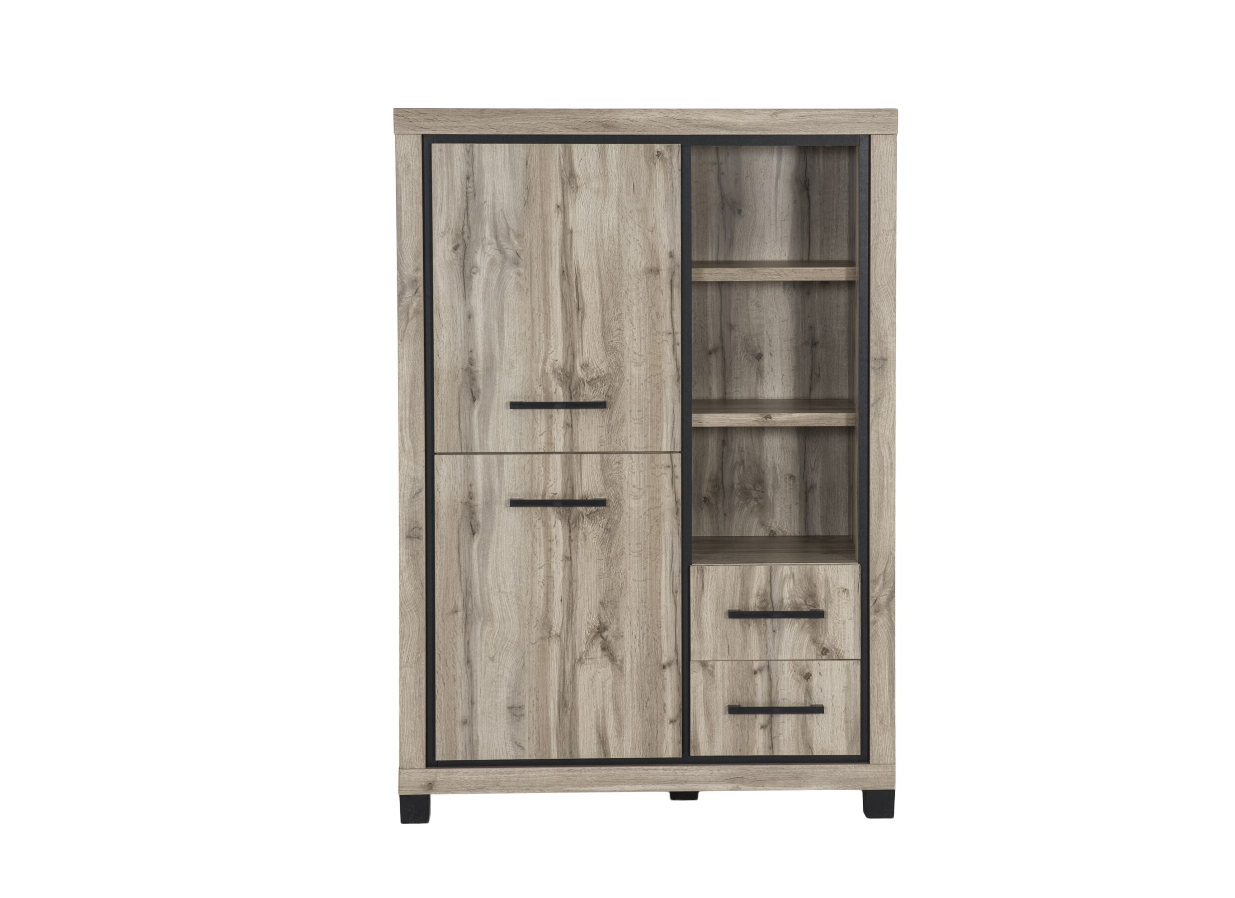 Découvrez le Meuble Bar Elegance 114 cm, un meuble de bar élégant et fonctionnel en finition Canada Oak, idéal pour structurer et valoriser votre espace de vie. Grâce à sa largeur de 114 cm et sa hauteur généreuse, il offre un grand volume de rangement avec plusieurs compartiments ouverts, 2 portes battantes et 2 tiroirs, parfaits pour organiser vos bouteilles, verres et ustensiles de bar.