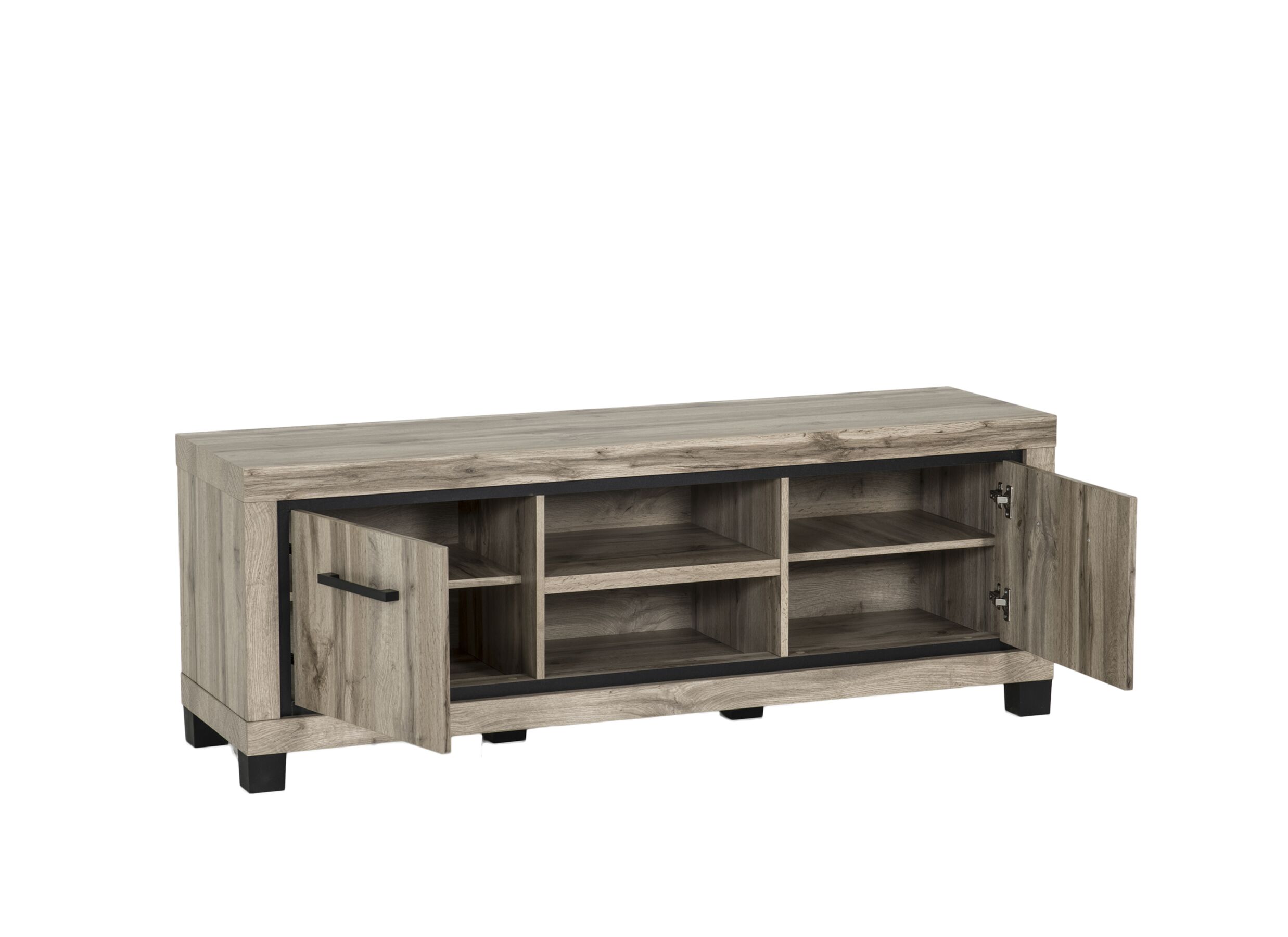 Côté dimensions, il offre une belle présence sans encombrer : 160 cm de largeur, 58 cm de hauteur et 45 cm de profondeur. Son dos fermé permet une installation plus propre visuellement, parfaite pour un coin TV soigné. Fabriqué en panneau avec film décoratif (pieds en matière synthétique), il est pensé pour un usage quotidien, avec un entretien simple (chiffon sec ou légèrement humide).