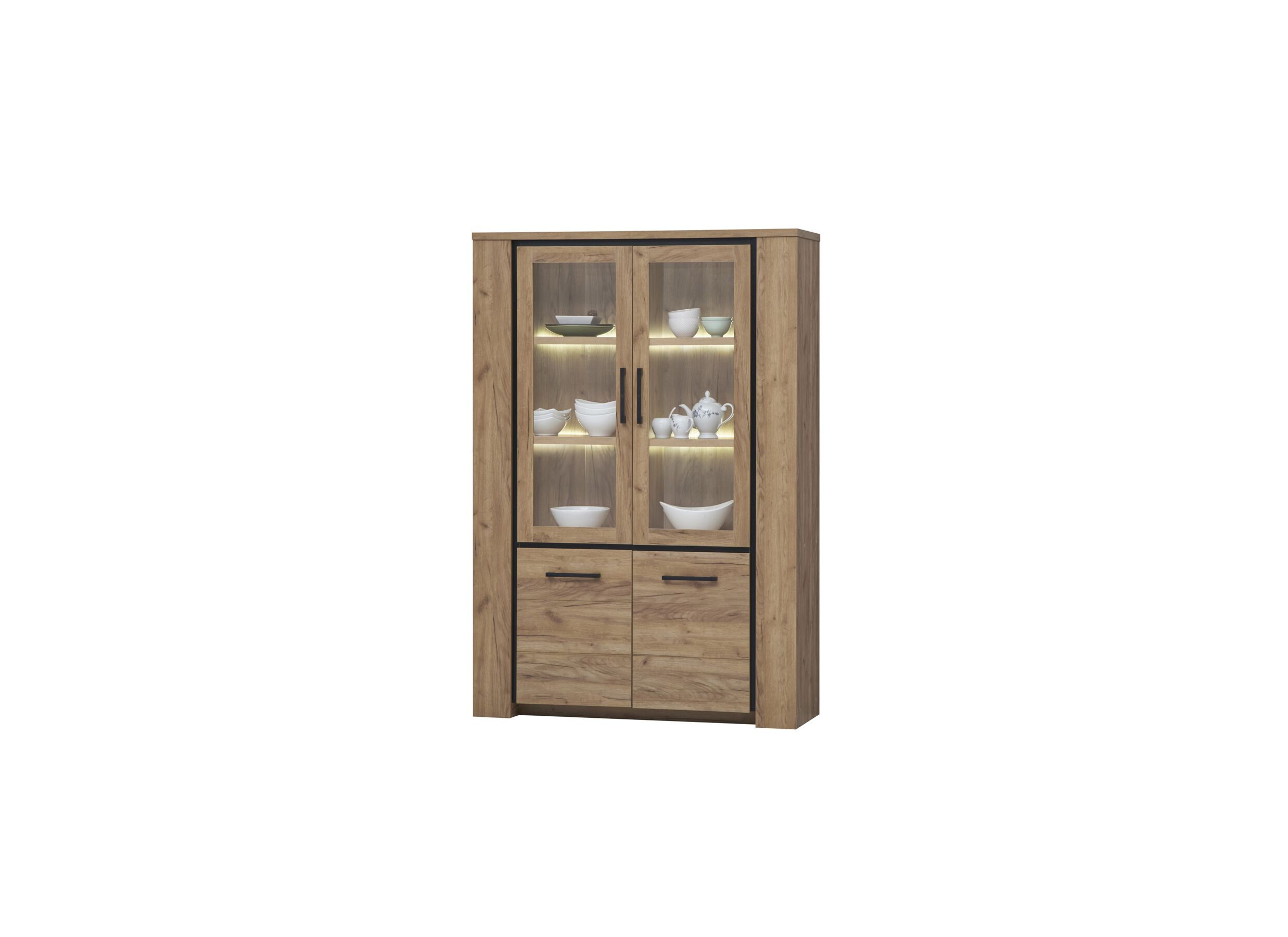 La Vitrine Elio 133 cm en décor French Oak est un meuble de rangement élégant et pratique, parfait pour exposer ta vaisselle, livres ou objets déco avec style. Son design intemporel apporte une ambiance chaleureuse et naturelle à ton intérieur.